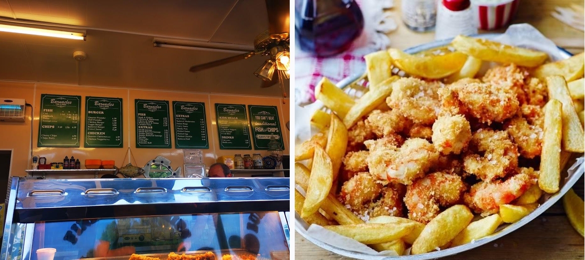Barnacles stands out for its commitment to quality and freshness. This traditional, family-run fish and chip shop prepares every dish with care, ensuring that the fish is cooked to perfection and the chips are always thick-cut and fresh.