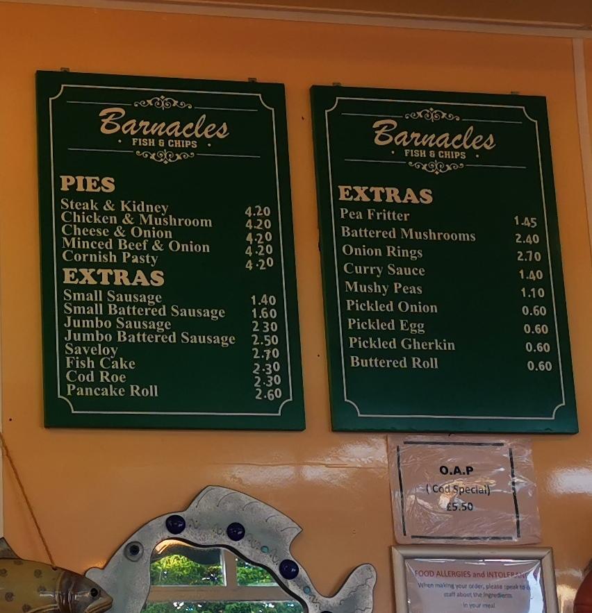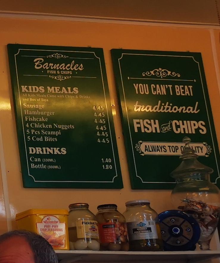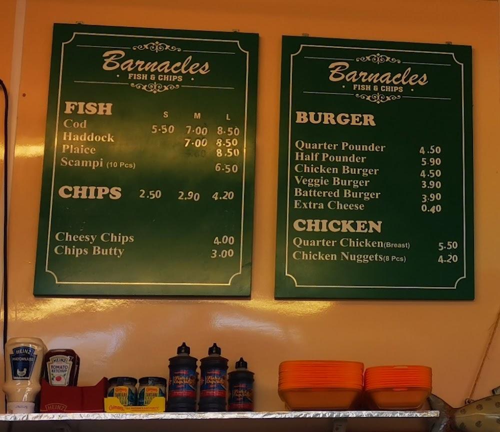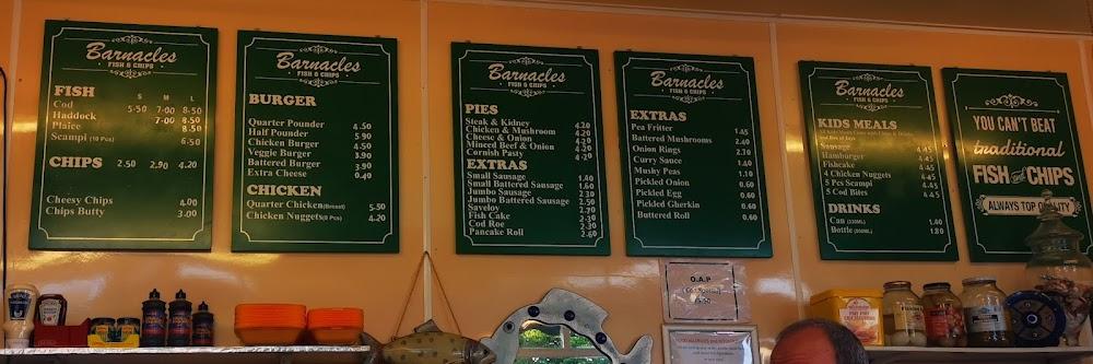 Established as a family run fish and chip shop, Barnacles boasts a reputation for quality and service that keeps customers coming back year after year. The welcoming owners ensure every dish is prepared fresh to order, making each visit feel special. With a focus on community and customer satisfaction, Barnacles invites diners to experience the authentic taste of British cuisine.